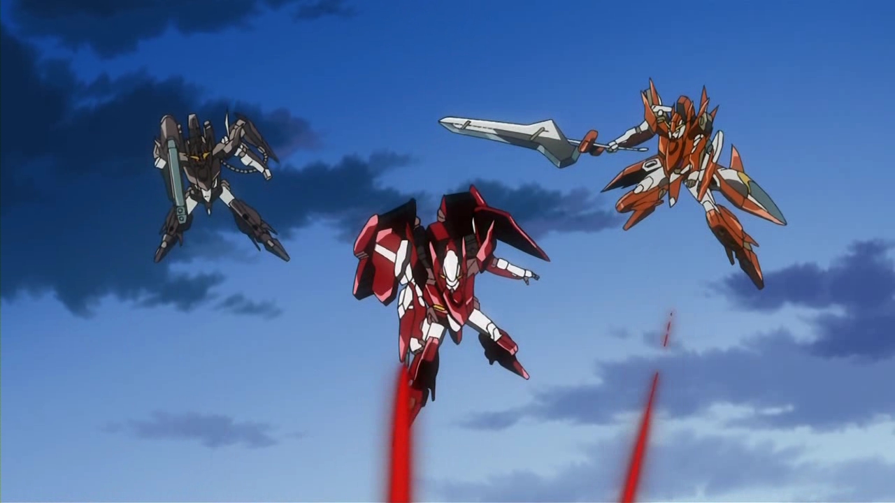 スローネ3機対エクシア、ヴァーチェ、デュナメスでキュリオスはお留守番。