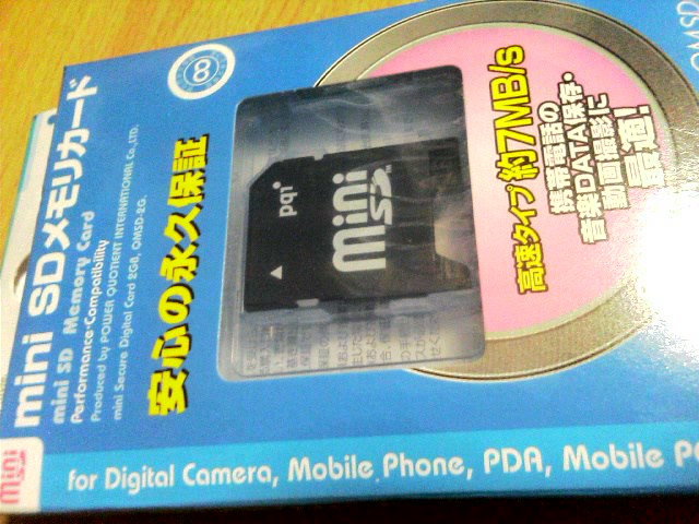 今回買ったminiSDは2GB、枚数で言うとおよそ2000枚は撮れる。